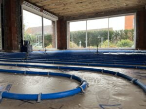 De plus, elle assure un bon enrobage des gaines et des tuyaux d’un plancher chauffant, ce qui améliore leur performance!